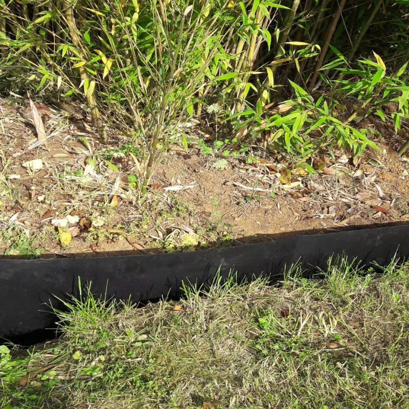Géo-Root en 564gr/m²est une géomembrane anti-racines et rhizomes polyéthylène haute densité, fabriquée à base de résine vierge de 1er choix, afin de garantir son efficacité et sa résistance aux UV. Membrane anti racines sur mesure, de hauteur 50cm, 70cm et 1m, pour contenir et diriger les racines d'arbre et de bambou. La géomembrane anti rhizome est robuste et résistante.